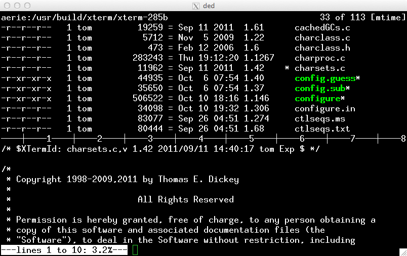ded caches data to improve performance. It also allows you to decide whether the screen should be repainted after running a shell command, etc. This may have been more important in the late 1980s when I started writing it. Here are a few examples: